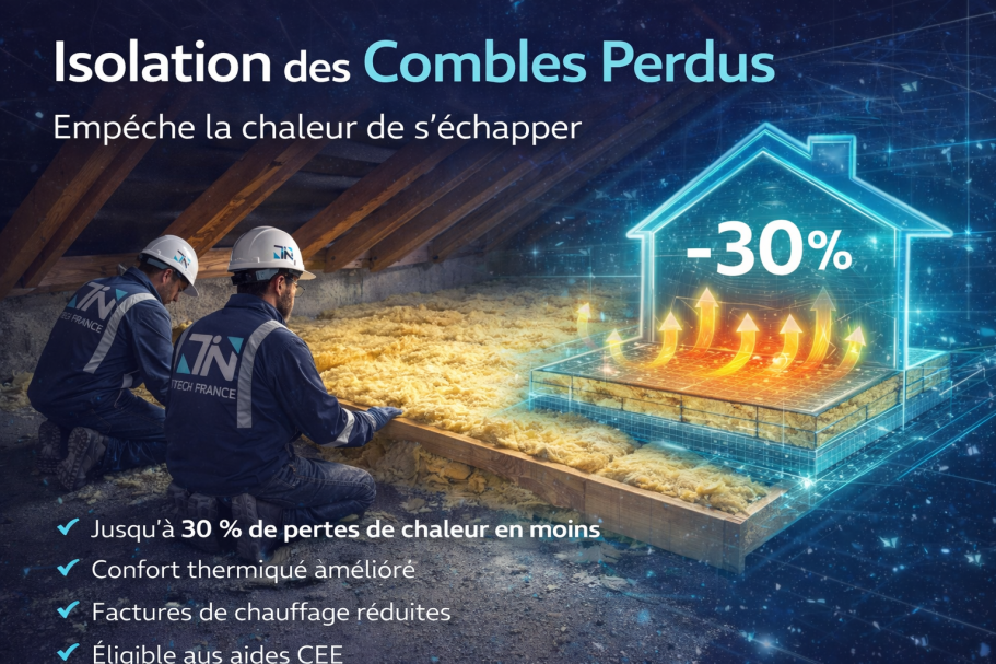 L’isolation des combles perdus est l’une des solutions les plus efficaces pour améliorer la performance énergétique d’un bâtiment. En effet, jusqu’à 30 % des pertes de chaleur peuvent provenir d’une toiture mal isolée. Isoler vos combles permet donc de réduire significativement les déperditions thermiques et de réaliser des économies d’énergie durables.